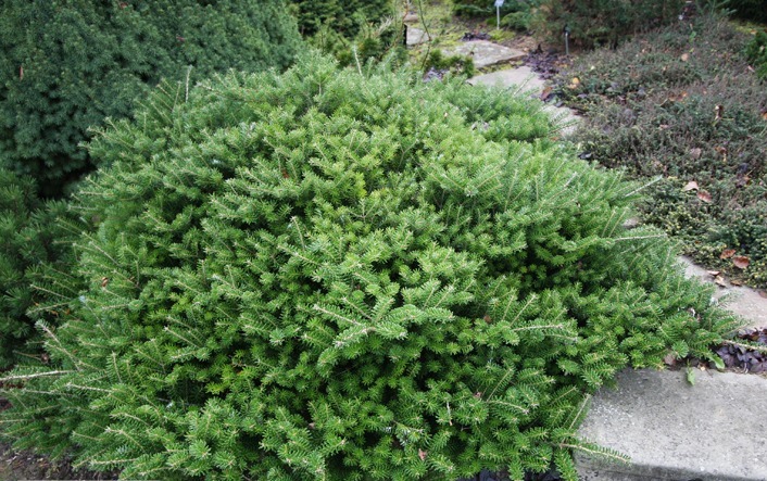 Пихта компактно расположится как на альпийской горке, так и на газоне. В высоту она не будет превышать 30 сантиметров. Маленькие иголочки обильно покрывают ветки и побеги, а их сизовато-зелёный цвет привлекает внимание. Миниатюрная пихта хорошо растёт на богатой земле, а вот полутень её не смущает.