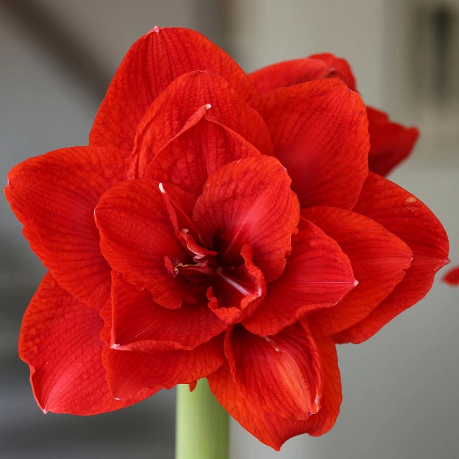 Амариллис махровый дабл кинг - это великолепное растение с ярко-красными махровыми цветками, украшенными белыми штрихами. Этот сорт амариллиса поражает своей красотой и изысканностью. Растение имеет травянистую жизненную форму и достигает высоты до 70 см. Цветение начинается в сентябре-октябре, радуя глаз своими крупными цветками диаметром до 25 см.