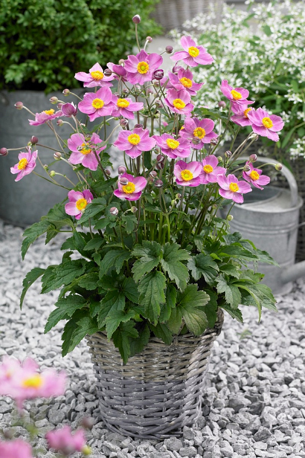 Рассада анемоны Фэнтези цидерелла (Fantasy ciderella) вырастает компактным, аккуратным кустиком около 60 см в высоту. Листва крупная, широкая, трехлопастная и темно-зеленого тона. Цветет розовыми, пятилепестковыми цветочками с желтой серединкой, которые располагаются на длинных побегах. Достоинства анемоны Фентези цидерелла: - обильное, нежное цветение - можно выращивать в контейнере - неприхотлива в уходе Семена анемоны Фентези цидерелла лучше посадить на достаточно освещенных местах участка с плодородной, рыхлой почвой. Красиво смотрится в альпинариях или вдоль дорожек.