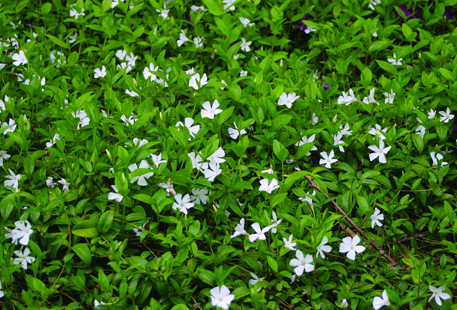 Рассада барвинка «Альба» (Alba) хорошо разрастается в любых условиях, как при ярком солнце, так и в полностью затененных местах. К почве растение также не требовательно, но лучше всего растет в плодородном и рыхлом грунте. Рассада барвинка «Альба» используется для создания рокариев, клуб и создания лужаек в парках и скверах. Веточки могут достигать в длину до 60 см. Они плотно покрыты продолговатыми листочками темно-зеленого цвета. Листики сохраняют цвет круглый год. Растение, выращенное из семян барвинка «Альба», зацветают в мае. Цветение продолжается на протяжении месяца. Цветочки имеют белый цвет.