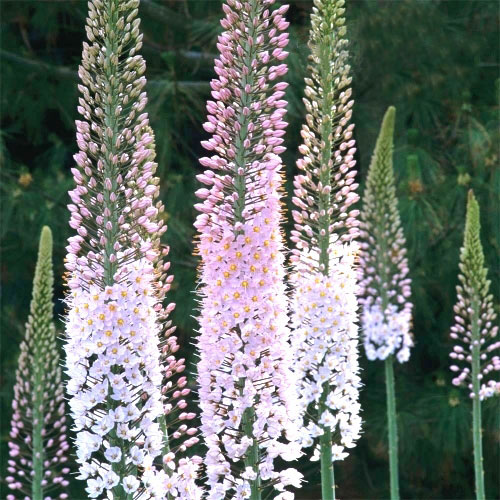 Рассада эремуруса "Фокстрот" (Foxtrot) принадлежит к раннецветущим луковичным растениям. Вырастает до 1,5-2,5 м в высоту. Период цветения – апрель-май, а размер цветов 10-12 см в диаметре. Окраска цветков колеблется от нежно розового до ярко-розового с хорошо выраженной махровостью на концах лепестков. Они имеют приятный, нежный запах. Рассада эремуруса "Фокстрот" предпочитает произрастать на плодородных влажных почвах на солнечной стороне. Высаживают луковицы осенью (октябрь-ноябрь).