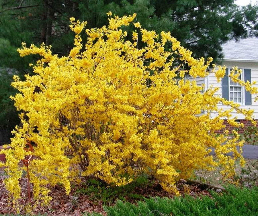 Саженцы форзиции промежуточной Эра (Era, Forsythia intermedia) – высокорослый декоративный кустарник, высота которого достигает 3 метров. Его характеризует раскидистая крона округлой формы. Свое внимание завоевала у садоводов благодаря раннему цветению, в апреле-мае, желтыми крупными цветками, диаметром 2,5 сантиметра, обильно покрывающими поникающие ветви. Листья кустарника зазубренные зеленого цвета. Форзиция промежуточной Эра светоустойчива, но может прорастать и полутени, неплохо переносит ветер, но может замерзнуть от холодных, зимних ветров. Сорт характеризуется засухоустойчивостью. Плохо переносит морозы.