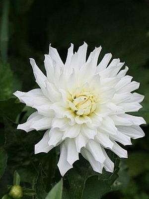 Луковицы георгины махровой Аспен (Aspen, DÁHLIA VARIABILIS) отлично приживаются, хорошо переносят неблагоприятные погодные условия. Клубневое бордюрное декоративное растение не требует особого ухода, любит солнечные места, защищенные от ветра. Формирует компактные кустики с густыми листьями, многочисленными бутонами. В период роспуска диаметр белоснежного цветка доходит до 10 сантиметров, высота куста равняется 40 сантиметрам. Растение радует обильным цветением с июля по сентябрь, становится настоящим украшением сада. Подходит для выращивания в квартирных условиях, на балконах.