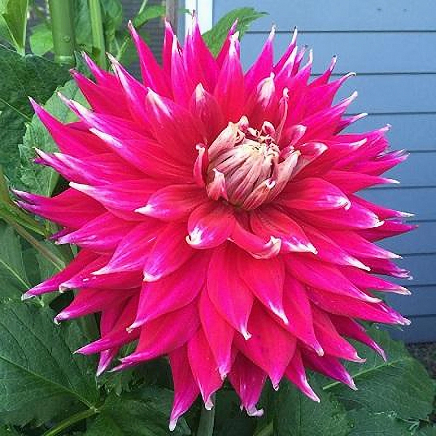 Луковицы георгины Эй Си Дарк Хорс (Dahlia AC Dark Horse) вырастут высокими крупноцветковыми растениями, добавляющими клумбе яркости. Хороши в групповых посадках, но используются и как отдельные элементы композиции. Особенно радуют длительным периодом цветения: с июня до октября. Махровые лилово-красные бутоны можно смело назвать гигантскими. Диаметр цветка достигает 23 сантиметров, что выглядит потрясающе. Лепестки с внутренней стороны нежно-белые, и потому создается эффект мягкого сияния. Растение требуют хорошо прогреваемых, солнечных мест, регулярного полива.