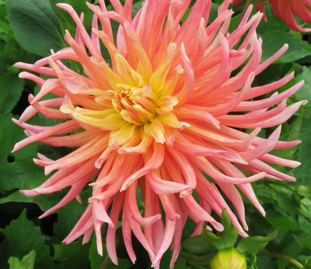 Окраска цветка : лососево-розовый с жёлтым центром