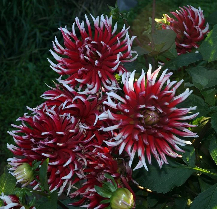 Луковицы георгины махровой Friquolet (Dáhlia variabilis) следует высаживать на солнечном месте или в полутени в мае – начале июня, после того как минует угроза возвратных заморозков. Сорт подходит для создания цветочной изгороди (тогда клубни высаживают ближе друг до друга), для посадки на клумбах и в контейнерах. Высота растения варьируется от 80 до 150 см. Цветки крупные, диаметром от 15 до 25 см. Состоят из большого количества закрученных лепестков двойной окраски – внизу они красно-малиновые, а сверху белые. Цветут георгины Friquolet с середины лета до заморозков.