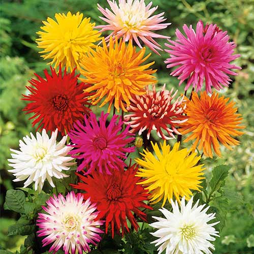 Георгина Кактус Фловеред Микс - это удивительное растение с разнообразной окраской цветков, которое поразит вас своей красотой и изяществом. Сорт flowered mix представляет собой настоящее произведение искусства природы, сочетающее в себе яркие оттенки и неповторимые формы. Высота растения может достигать до 130 см, что делает его заметным акцентом в вашем саду или огороде.