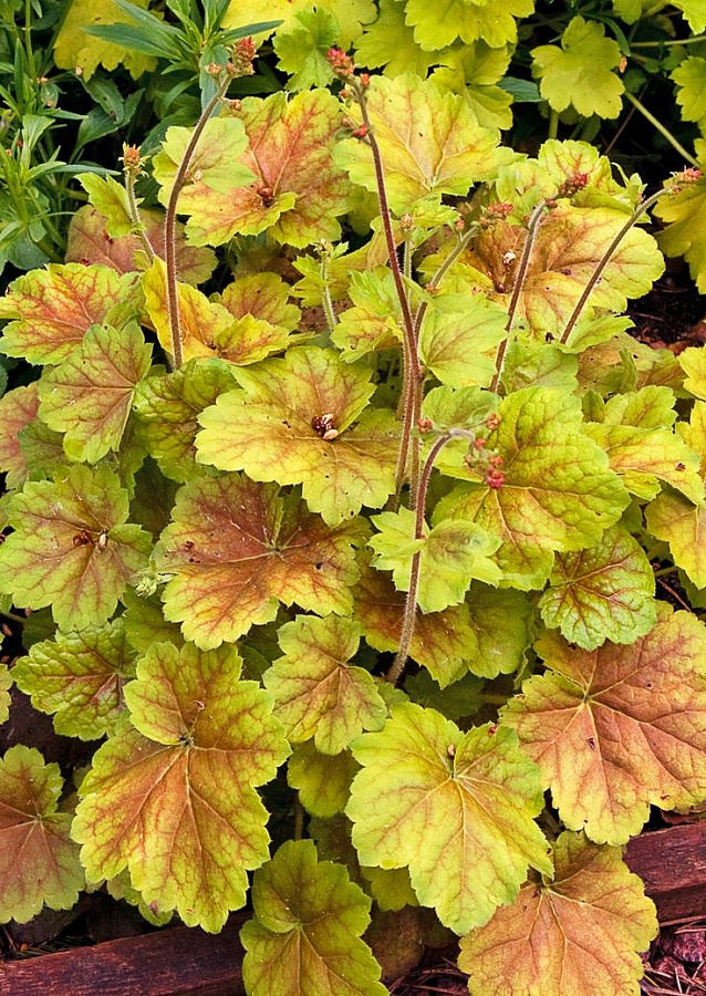 Рассада гейхеры Миракл(Miracle) и семена этого сорта вполне оправдывают своё название – «Чудо». Листья многоцветные, меняют цвет от ярко-зелёного до бордово-малинового, подобно хамелеону, реагируя и на солнечное освещение, и на характер грунта, и на погоду.