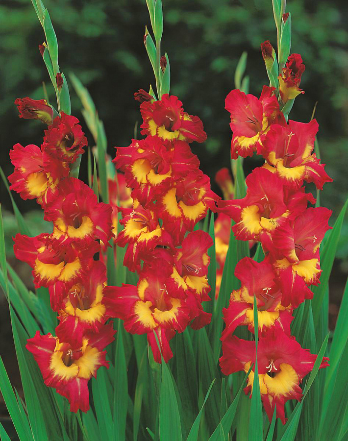 Луковицы гладиолуса гибридного Vasto порадуют необычной яркой окраской цветов, из которых получаются роскошные букеты. Высота взрослого растения варьируется от 50 до 60 сантиметров. На крепких стеблях формируется около 10-15 цветов, состоящих из желтых и красных лепестков. Это растение отлично смотрится в составе смешанных и групповых посадок. Высаживая луковицы гладиолуса гибридного Vasto, следует выбирать места с хорошим освещением, но легкой полутенью. Это гарантирует длительное цветение. Также важна защита от сквозного ветра, который может сломать цветоносы.