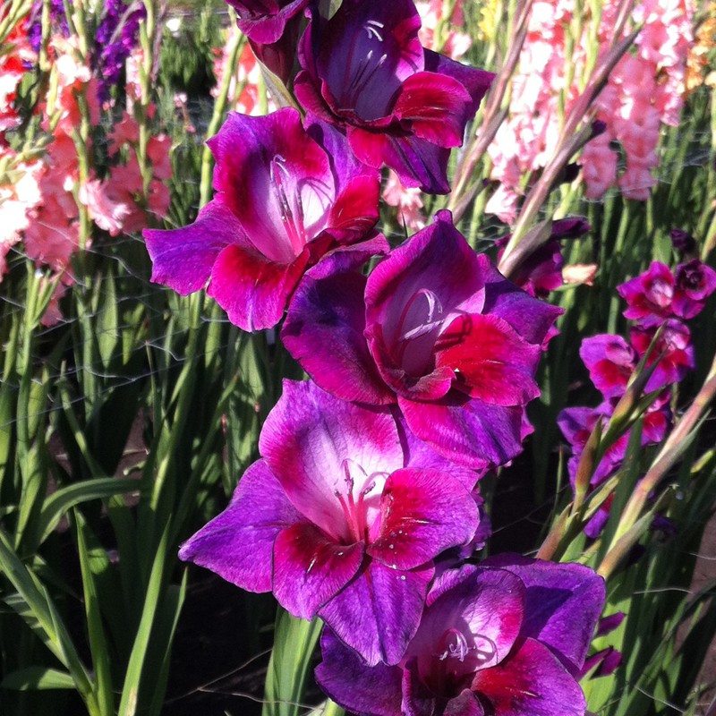 Луковицы гладиолуса гибридного Velvet Eyes высаживают в лунки на расстоянии 25-30 см. Место для посадки выбирают солнечное, защищенное от ветра, без застоя влаги, с легким, дренированным грунтом. Взрослые побеги могут достигать в высоту от 50 до 150 см. Листья мечевидные, насыщенно-зеленого окраса. Цветочки распускаются в июле. Они насыщено ультрафиолетового оттенка с мягкими, бархатистыми лепесточками, гофрированные по краям и с красной серединкой. Используют гладиолусы гибридные Velvet Eyes для оформления различных цветников и выращивания на срез.