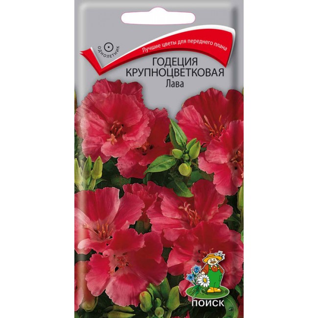 Годеция крупноцветковая лава - это великолепное растение с карминно-красными цветками, которое поражает своей красотой и изяществом. Ее стебель прочный и прямой, достигает высоты до 40 см, что делает ее идеальным выбором для групповых посадок. Листья годеции имеют форму и размер, придающие растению особый шарм и уникальность.