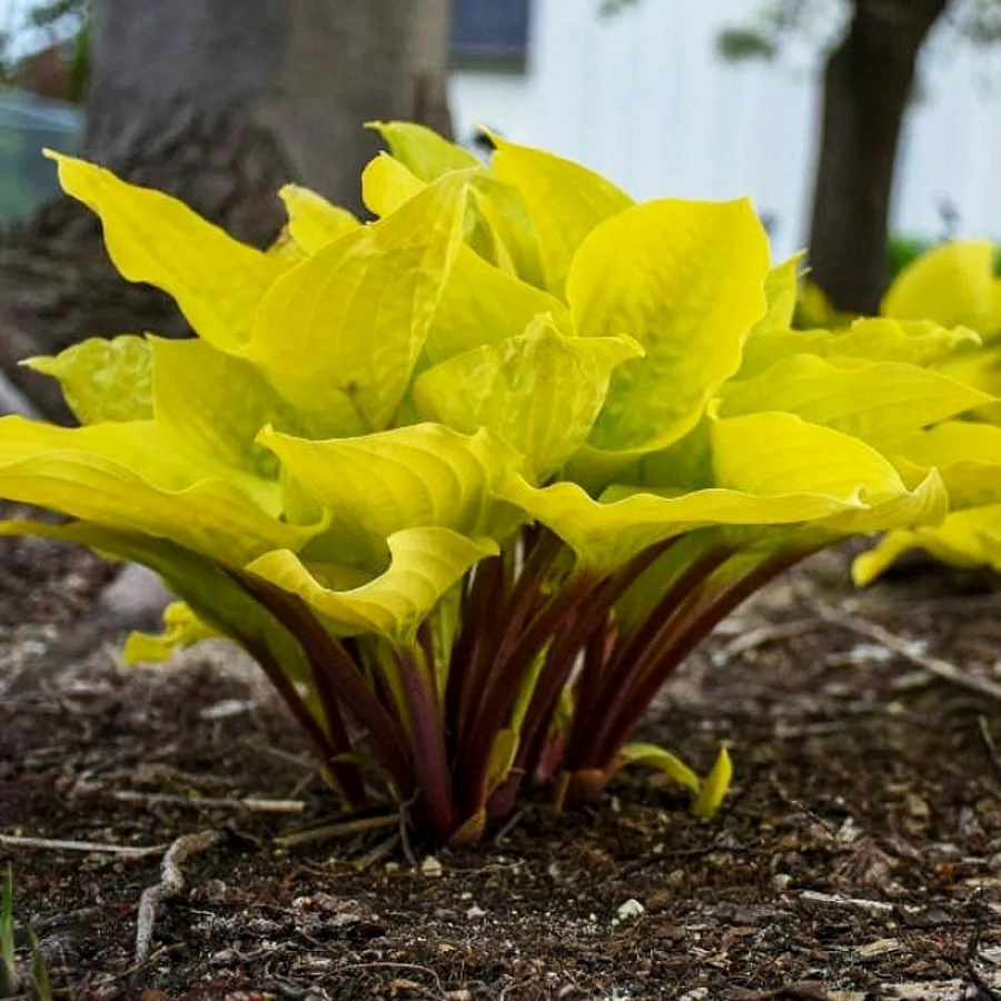 Весенняя окраска листвы : молодые побеги пастельно-лимонные с восковым напылением, позже налет смывается, приобретая насыщенно-желтый цвет