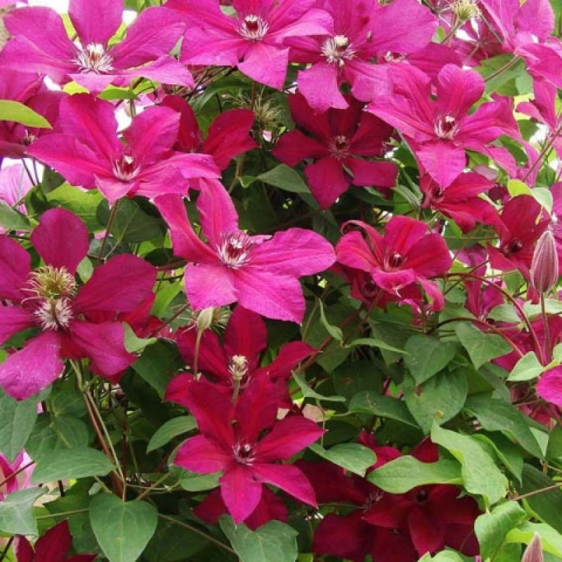 Клематис крупноцветковый "Кардинал Вишинский" - это великолепное растение, которое поразит вас своей красотой и изяществом. Его ярко-красные цветки с красно-коричневыми тычинками привлекут внимание всех садоводов. Этот кустарник может достигать высоты до 200-300 см, что делает его идеальным для создания живых изгородей или одиночной посадки в саду.