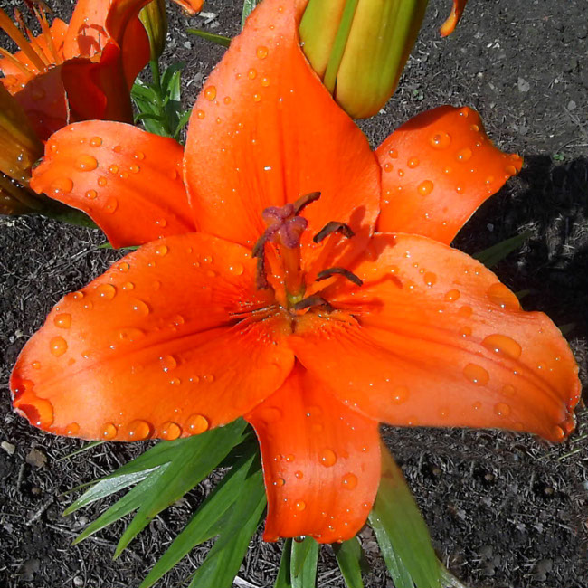 Луковицы азиатской лилии Брунелло (Lilium asiatic Brunello) нравятся цветоводам своей неприхотливостью в выращивании, устойчивостью к негативным условиям. Формирует кустик высотой до 110 см. Цветки в диаметре достигают 19 см. Окраска насыщенно-оранжевая, чистая, без крапа. Тычинки коричневатые, заметные. Период цветения – июнь и июль. Для лучшей бутонизации лилию желательно высаживать на хорошо освещенных, но при этом закрытых от полуденного солнца участках. Также рекомендуется периодически вносить подкормки, обеспечить умеренный полив. На одном побеге формируется до 10 бутонов.