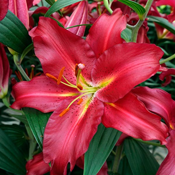 Луковицы лилии Gran Tourismo высаживают осенью или весной, предпочтительно в плодородную, проницаемую, богатую перегноем, слегка кислую почву. Лучше всего выглядит данное растение в группах по 3-5 штук. Но и в смешанных цветниках культура очень эффектна. Зацветает растение через 100-110 дней после посадки. Простые цветки очень крупные, диаметром до 20-25 см. Их цвет насыщенный красно-розовый с отличительными отметинами желто-зеленого тона в центре и редким крапом.  Края лилии Gran Tourismo слегка волнистые.
