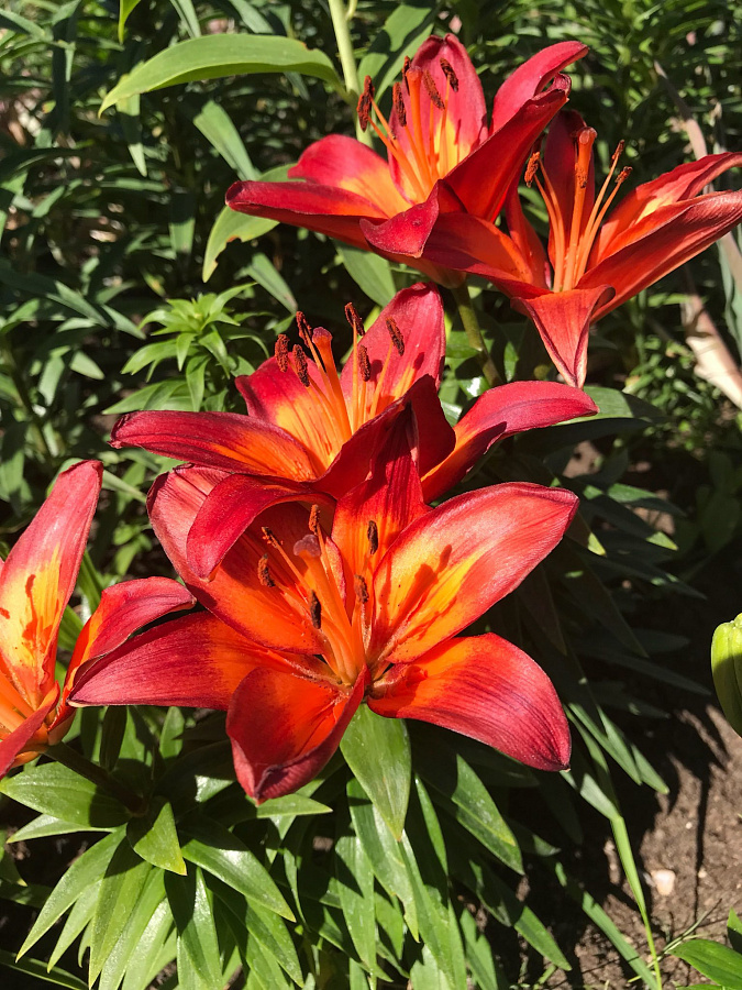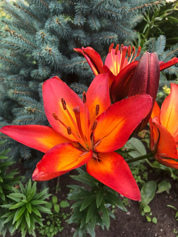 Луковицы Лилии ЛА-гибрид Фиамма (Lilium LA-hybrid Fiamma) станут сердцем сада, когда наполнят участок яркими пламенными языками своих лепестков. 20-сантиметровые в диаметре цветки насыщенного красно-оранжевого цвета имеют темно-желтый центр. Все это делает полностью распустившееся растение похожим на огоньки, которые не останутся незамеченными. Особенно эффектно Фиамма смотрится в насыщенной зелени окружающих ее кустарников или густой травы. Посадите этот сорт в миксбордере или на большой цветочной клумбе, и все окружающие лилию цветы заиграют новым калейдоскопом красок.
