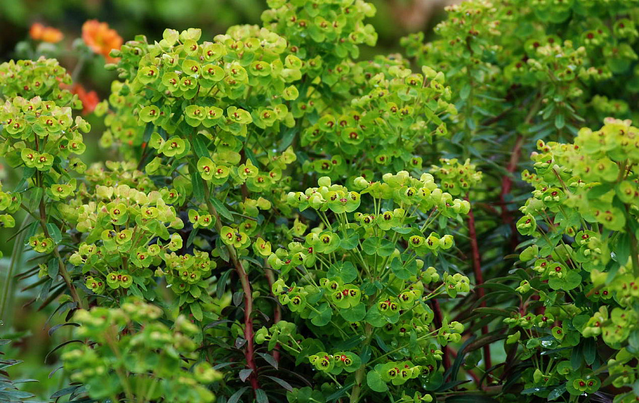 Рассада молочая мартина (Euphorbia martinii) образует куполообразные куртинки и вырастает около 50 см в высоту. В мае-июне цветет зелено-желтым цветением. Растение смотрится очень пышно и эффектно. Преимущества молочая мартина: