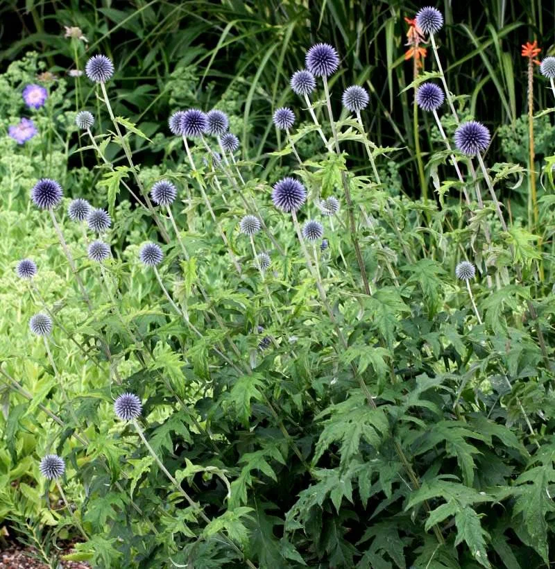 Саженцы Мордовника Банатский Топлов блю (Taplow Blue, ECHINOPS bannaticus) непременно стоит приобрести для декоративного оформления цветников, клумб и садов. Многолетник достигает в высоту одного метра, стебли с белесым пушком слабо ветвятся. Нижняя часть листьев беловойлочная, форма листьев резная, перисто–раздельная. Небольшие голубые цветочки собраны в круглые соцветия диаметром 3-5 сантиметров. Культуру широко используют для высадки в группах на передний или задний план цветочных комбинаций. Мордовник неприхотлив, морозостоек, любит солнце, переносит жару и засуху. Он не требователен к составу почвы, на одном месте может расти до 5 лет.