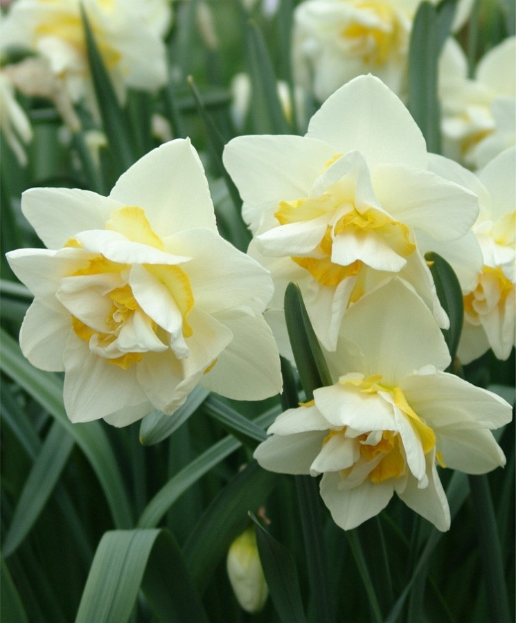 Луковицы нарцисса White lion подходят для украшения клумб и для выращивания в контейнерах. Для большего эффекта их лучше высаживать группами. Данный сорт вырастает до 30-50 см в высоту. Цветет в конце апреля — мае. Цветочки очень крупные, окрашены в нежно-желтый цвет, полностью махровые. Особый декоративный эффект достигается за счет дополнительных лепестков. Высаживать луковицы нарцисса White lion рекомендуют на хорошо освещенные места с дренированной, легкой почвой, защищенных от сильных ветров и без застоя влаги. В тени цветочки будут не такими крупными и махровыми.