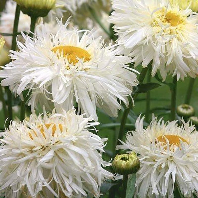 Рассада нивяника Крейзи Дэйзи (Crazy Daisy) поможет украсить загородный участок. Применяется для миксбордеров или отдельных клумб. Эффектное многолетнее растение имеет махровые или полумахровые цветы. Высота куста достигает 70 см. Достоинства растения: крупные соцветия (7–8 см в диаметре) и яркое сочетание белых лепестков и желтого центра.