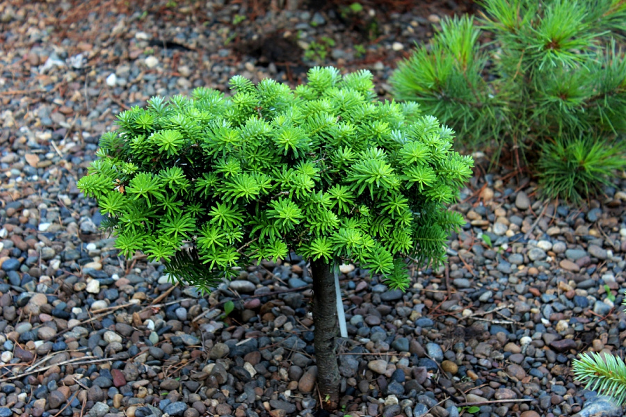 Саженцы пихты корейской Бриллиант (Brillant): пушистые карликовые кустарники прямо искрящиеся яркими зелеными хвоинками. Густота кроны придает крупномерам мягкую округлую форму. Хвоя короткая, снизу имеет серебристые полоски. Максимальная высота кустов не превышает 0,6 м. Пихта корейская Бриллиант подходит для выращивания в контейнерах и подходит для формирования бонсаи.