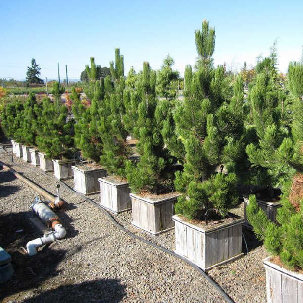 Саженцы Сосны боснийская Сателлит (Satellit, Pinus leucodermis) – компактное хвойное дерево пирамидальной формы, его высота не превышает 300 сантиметров. Сорт уникален своим ответвлением. Его побеги равномерны, растут все под одним углом. Крона плотная, густая, диаметром до 150 сантиметров. Хвоя довольно длинная, около 15 сантиметров, темно-зеленого оттенка, блестящая, жесткая, немного скрученная кверху. Шишки яйцевидной формы коричневого цвета, длиной 6-8 сантиметров. Сорт зимостойкий, неплохо растет в зимах средней полосы. Растение светолюбивое, не переносит засуху, хорошо себя чувствует в умеренно влажных плодородных почвах.