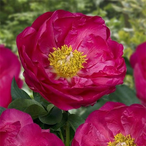 Пион для патио Афины ― представитель одного из самых красочных пионов в сортовой серии, выведенной американскими селекционерами. В высоту травянистый полукустарник достигает 80 сантиметров. В период цветения он усыпан полумахровыми ярко-розовыми цветами, каждый из которых состоит из множества лепестков, расположенных в два-три ряда. Цветы имеют приятный аромат, цветение продолжительное, начинается в середине сезона. Такой красавец гарантированно станет украшением любого сада, цветы подходят для срезки, желательно это делать еще в фазе нераскрытых бутонов.