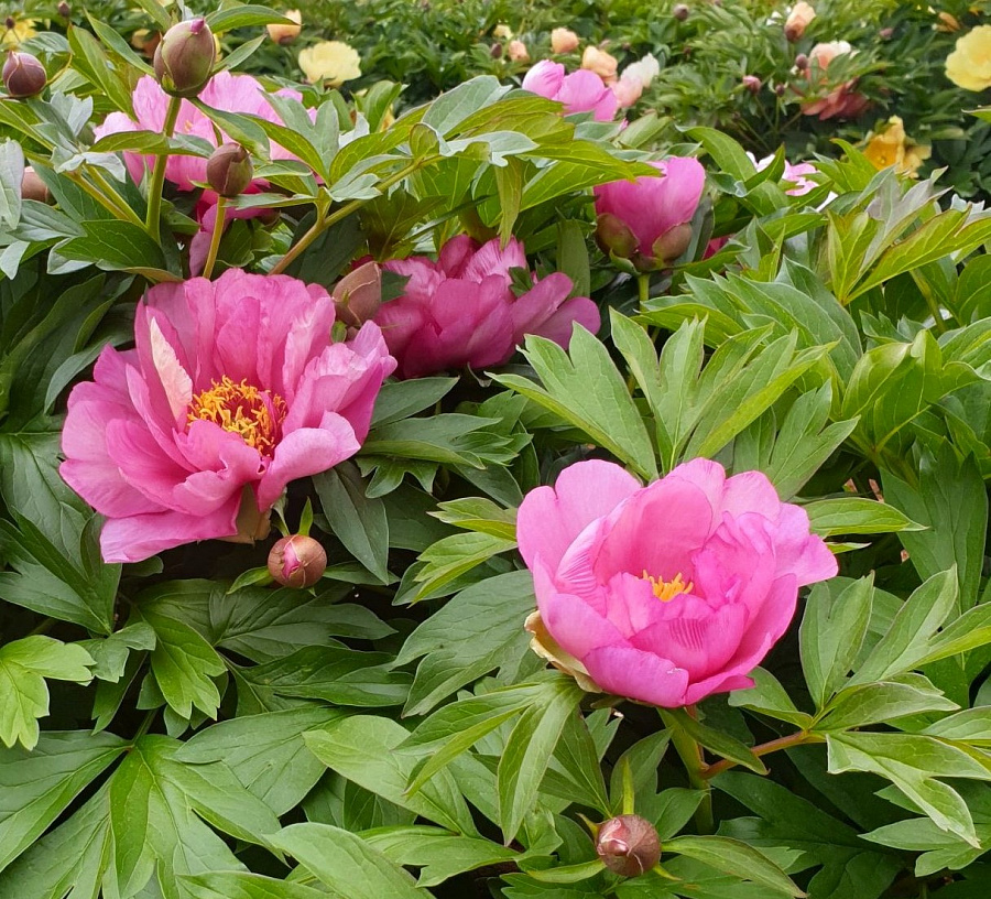 Саженцы пиона ИТО Pink Double Dandy (Пинк Даубл Денди) Сорт для романтичных натур, полумахровые пышные цветки раскрываются на длинных и начинают свою роскошную жизнь в лавандово-розовом ансамбле, постепенно переходя до глубокого, насыщенного розового. Иногда на одном цветке может отображать оба оттенка одновременно. Серединка цветка красивого золотистого цвета. Листва также преображается в течение сезона, сначала глянцево-зеленой оттенок, после становиться медно-бордового цвета— настоящая находка в ландшафте! Бутоны распускаются постепенно: сначала верхушечные, а затем боковые. Благодаря этому взрослые кусты отличаются продолжительным цветением. Саженцы пиона ИТО образуют привлекательные плотные, аккуратные округлые кусты с крепкими стеблями и узкими, темно-зелёной листвой, которая остается зеленой до осени. ИТО-пионы - это уникальные сорта, полученные путем скрещивания травянистых и древовидных пионов. Им присущи лучшие качества обеих групп: многолетники выносливы и устойчивы к жаре и влажности. Характерные особенности растения:
