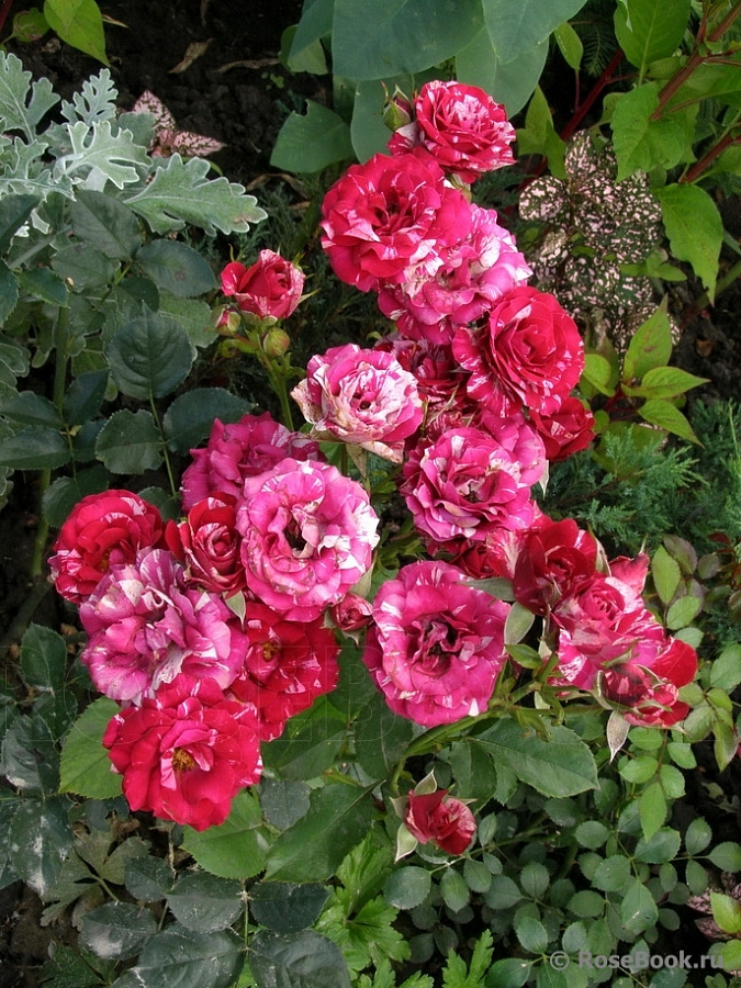 Саженцы розы спрей Arrow Folies отлично растут на солнечных участках с плодородной, увлажненной, нейтральной почвой, где нет застоя влаги. Сорт неприхотлив, отличается высокой зимостойкостью, устойчив к заболеваниям. Куст компактный, высотой всего до 60 см и шириной до 50 см. Побеги многочисленные, густооблиственные, с крупными шипами. Цветение непрерывное, продолжается с июня до сентября. Цветки махровые, диаметром 4-6 см, пурпурно-красного окраса с белыми полосами, с нежным ароматом. Срезанные бутоны могут длительное время стоять в воде и не терять привлекательности.
