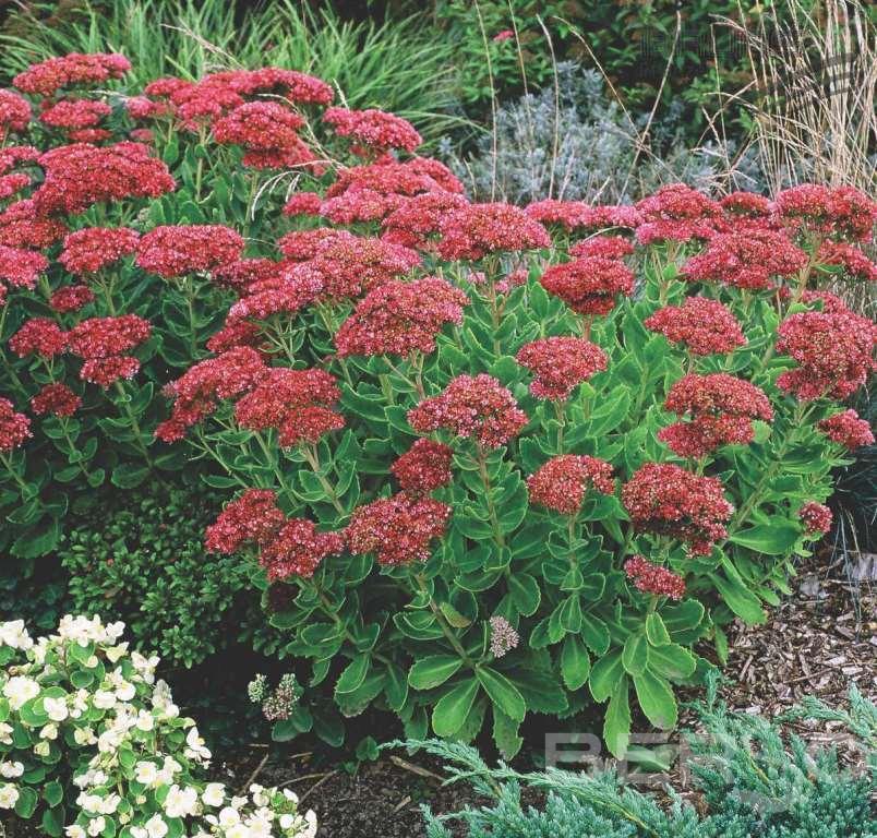 Этот сорт цветет в месяцах с марта по июль, радуя глаз своими темно-розовыми цветками. Седум телефиум хербштфройде предпочитает обогащенные почвы и светлое место для посадки. Он не требует частого полива, но регулярное опрыскивание поможет ему сохранить свежий вид. Растение необходимо удобрять для более яркого и длительного цветения.