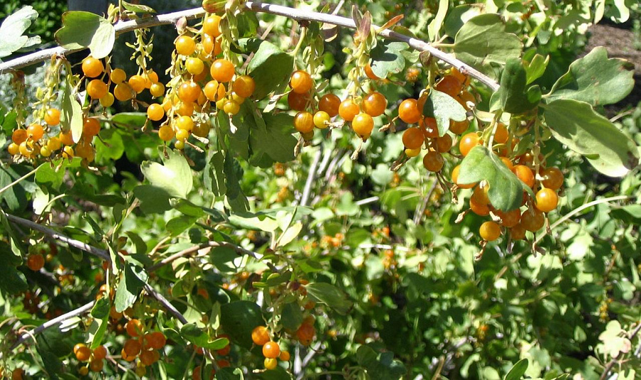 Саженцы смородины золотистой отличаются от других сортов тем, что они засухоустойчивы. Продвинутые садоводы любят формировать кроны кустарника, чтобы он лучше освещался. Период цветения крупномера смородины золотистой короткий – всего 15-20 дней. В это время растение покрывается мелкими желтыми цветочками. Потом кустарник начинает плодоносить. Урожай довольно большой. Плоды черного цвета шаровидной формы. Ухаживают за саженцами смородины золотистой просто: удобряют почву во время цветения и проводят обрезку в сентябре или в начале марта. Полив необходим только во время сильной засухи.