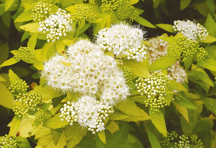 Саженцы Спиреи японской Вайт Голд (White Gold, Spiraea japonica) – листовидный кустарник высотой около 90 сантиметров. Растение уникально своей раскидистой округлой кроной, которая достигает 100 сантиметров в ширину.