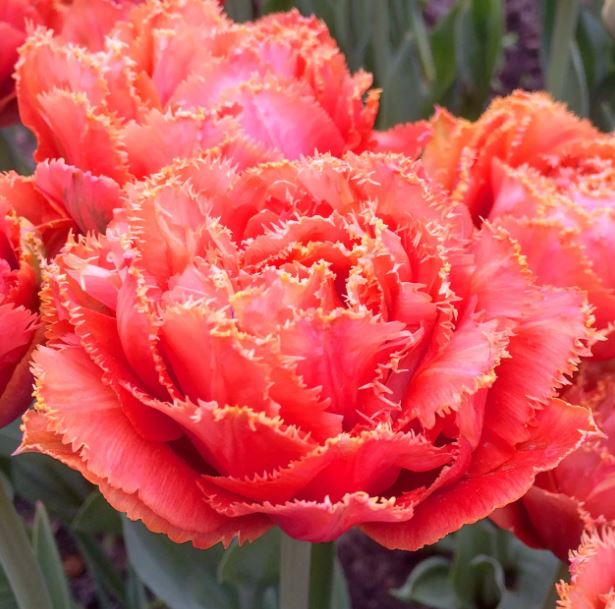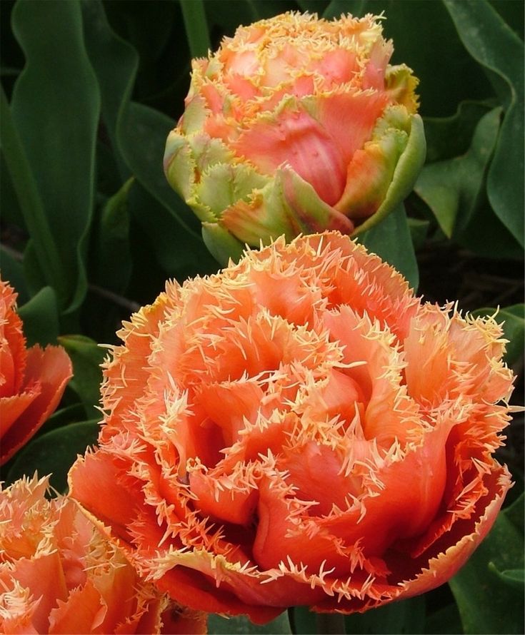 • Окраска цветка : оранжево-розовый с кремовой бахромой, махровый