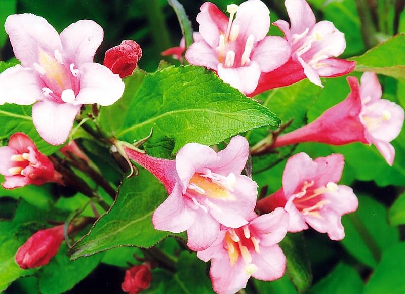 Саженцы Вейгелы гибридной Стириака (Styriaca, Weigela) – привлекательный лиственный кустарник, побеги которого достигают 250 см в высоту, пригибаясь к земле в процессе роста. Диаметр цветущей кроны достигает 3 м, поэтому растение популярно при оформлении ландшафтного дизайна парков и придомовых участков. В период цветения, который приходится на май-июль, многолетник густо покрывается небольшими розовыми цветами с легким приятным ароматом. Листья эллиптической формы, зеленые летом и желтые в осенние месяцы. Саженцы высаживают на солнечном, защищенном от ветра и переувлажнения участке. Корневая система нуждается в регулярной аэрации.