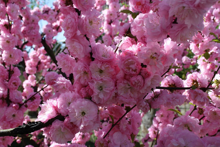 Саженцы вишни Железистой Розеа Плена (Rosea Plena) считаются одними из самых красивых представителей этого рода растений. В мае, еще до появления листочков на ветвях, побеги густо покрываются очень крупными махровыми цветками бело-розового цвета с сиреневым отливом. Раскрытый бутон достигает 2,5 сантиметров в диаметре, он похож на миниатюрный лотос или анемон своей формой. Цветов на ветке очень много, они буквально облепляют побеги, превращая растение в пышное розовое облако. Цветение длится 3 недели, начинаясь в мае.