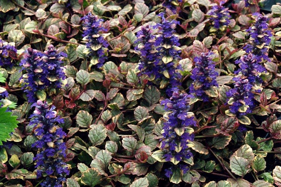 Рассада живучки «Бордовое свечение» (Burgundy Glow) – представитель почвопокровного декоративного растение. В высоту оно может достигнуть не более 15 см. Многочисленные листочки имеют глянцевую и рельефную поверхность. Цвет варьируется от зелено-красного с каймой розового оттенка до ярко-розовой с каймой белого оттенка. Цветение подросшей рассады живучки «Бордовое свечение» приходится на май и июнь. Цветочки сиренево-синие. Семена живучки «Бордовое свечение» высевают на солнечные участки или в полутень. Сорт морозоустойчив и служит прекрасным украшением садового участка.